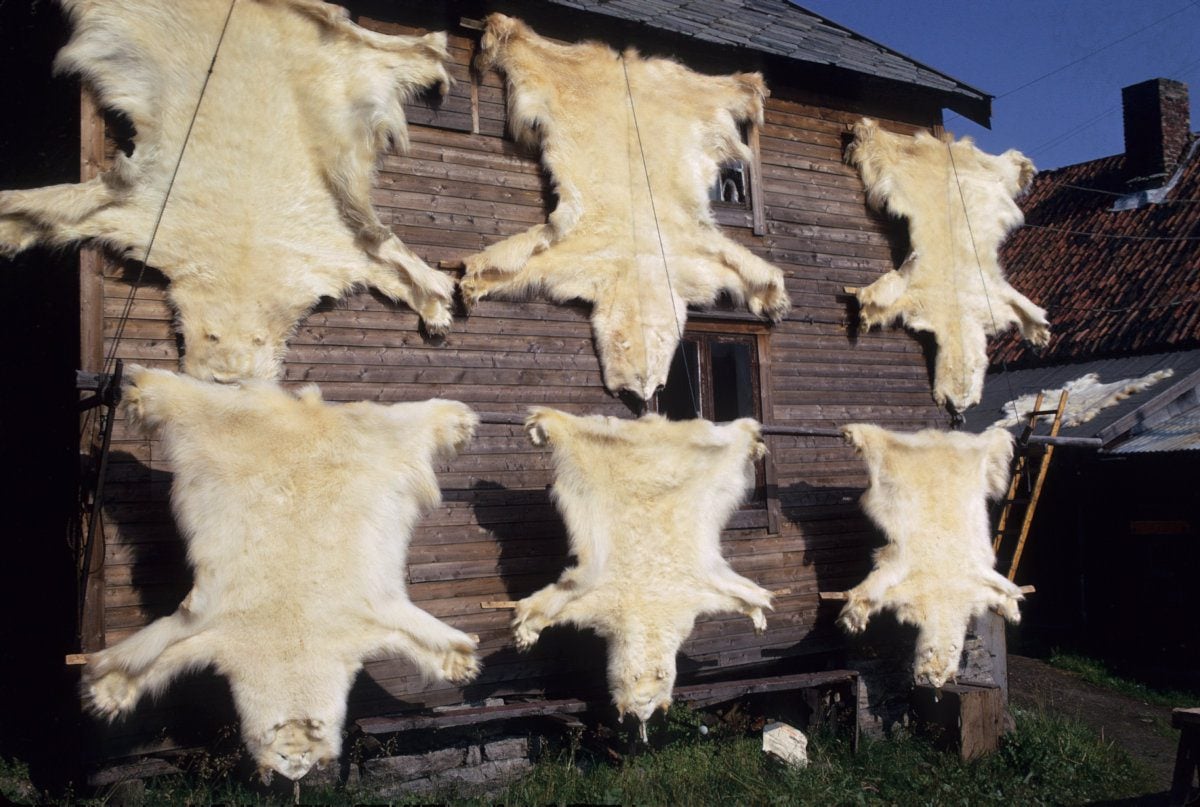 Inuit family in Greenland prepares a polar bear that has been shot/captured. Photo: Jon Aars / Norwegian Polar Institute