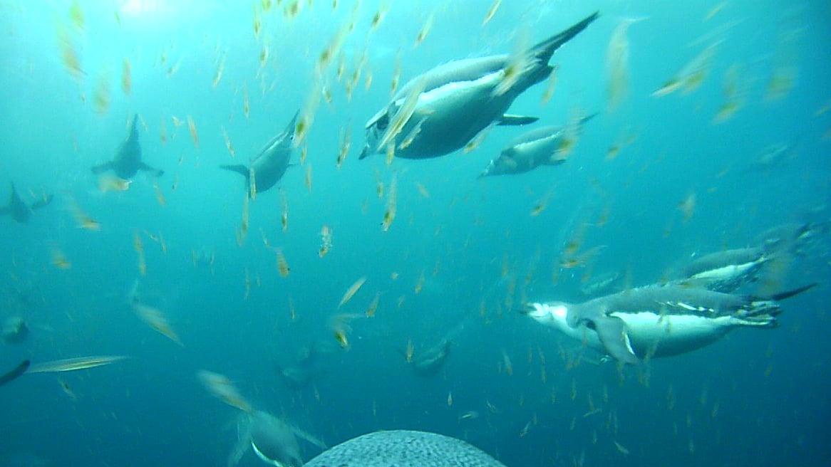 Our second research programme specifically addresses these challenges, and aims to develop a monitoring index that minimises the need for human presence while being relevant enough to determine whether fishing activities are adversely impacting penguins. With knowledge of the location of fishing activity and the prevailing ocean currents, we selected two penguin colonies: one where adult birds foraging at sea are directly exposed to fishing activities (Monroe Island), and the other in an area that was not affected by fishing (Powell Island). At both locations, we instrumented penguins with miniaturised high resolution electronic tags (measuring GPS position, diving depth, and body acceleration) and animal-borne HD video cameras.