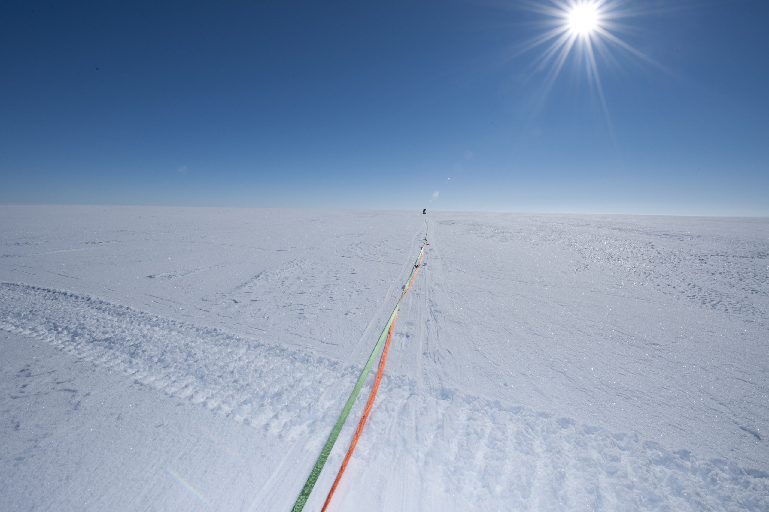 EXPOSED TO THE ELEMENTS Field work on the Antarctic ice sheet is conducted during the Antarctic summer, which lasts from November/December to February – but this is no guarantee of sunny, stable weather. This photo is from research conducted on the Fimbul Ice Shelf in Dronning Maud Land in Antarctica. Here, the field team cleans up after a storm that has ravaged the tent camp. Photo: Elvar Ørn Kjartansson / Norwegian Polar Institute