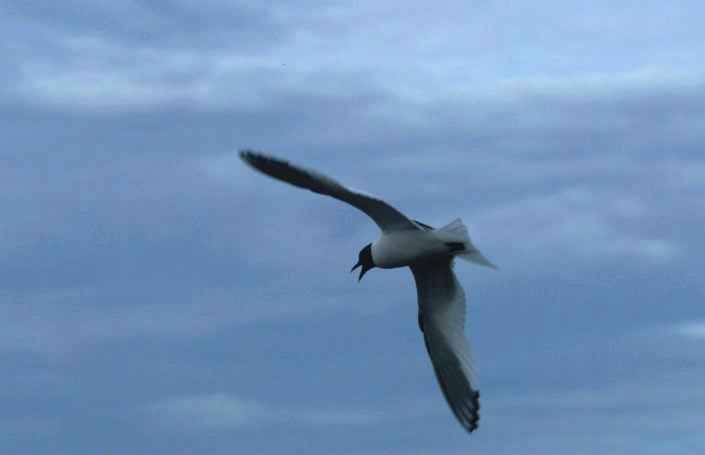 Juveniles have a grey-brown head, back and front part of the wings. The under-parts are white and the tail is white with a black band at the edge. The black markings of the wings make it easy to confuse young sabine’s gulls with a young kittiwake. Juveniles may also be confused with young ross’ gulls.