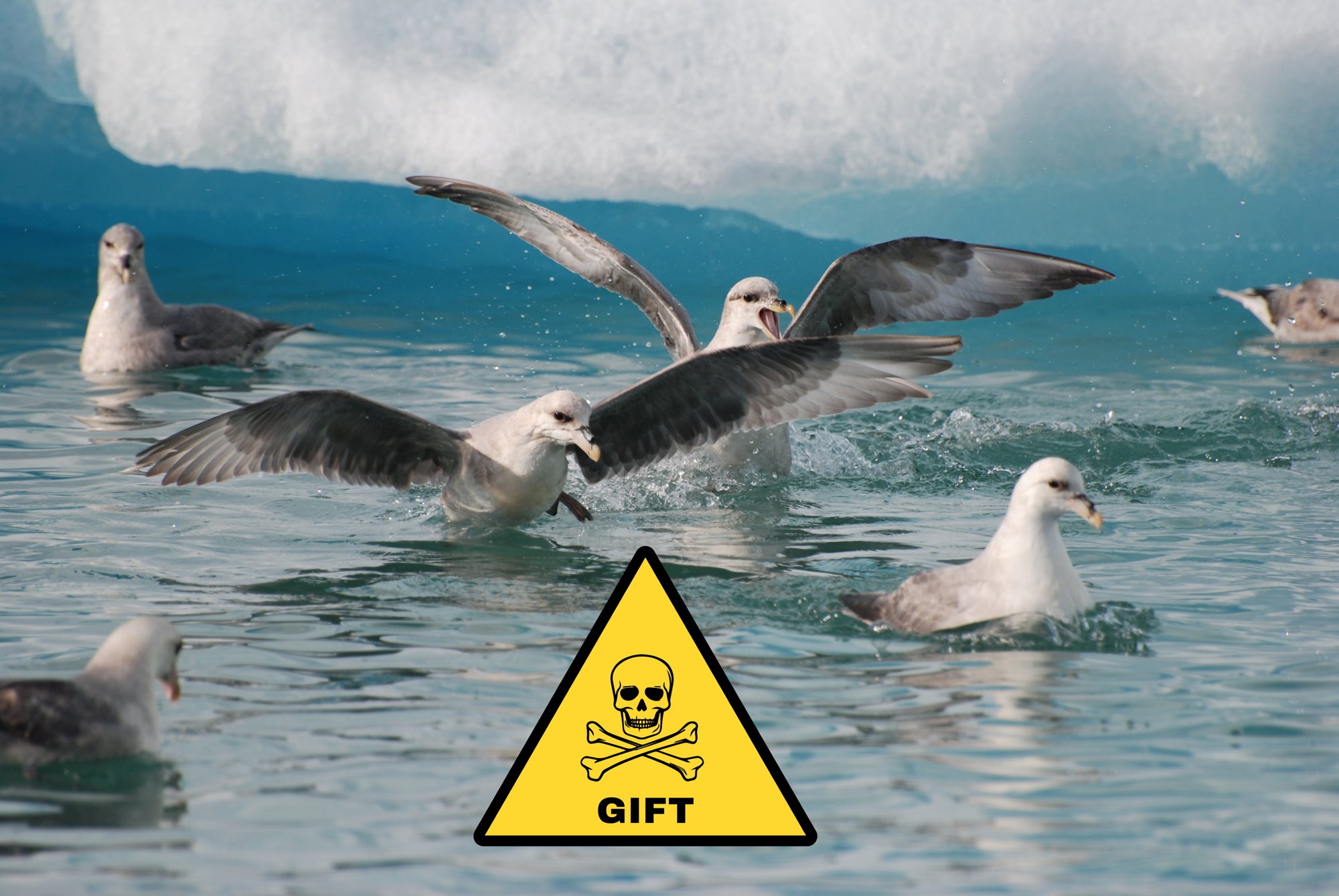 Toppredatoren polarmåke sliter med høye nivåer av miljøgifter, men også havhesten som er lavere nedi i næringskjeden får i seg miljøgifter. Illustrasjon: Norsk Polarinstitutt