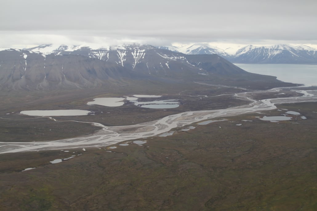 OMFATTANDE Den største utfordringa har vore å forenkle vassdata for å gjere karta godt lesbare. På bilete ser vi Reindalselva og Stormyrvatna i Nordenskiöld Land. Foto: Hallvard Strøm / Norsk Polarinstitutt