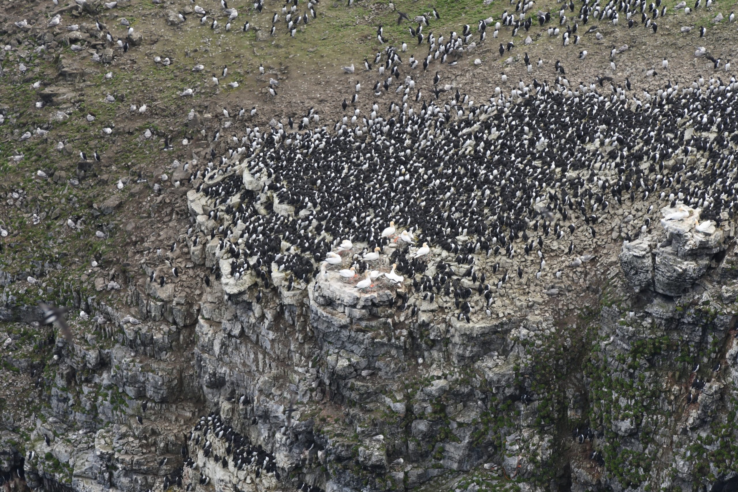 Den karakteristiske havsula er en nykommer på Bjørnøya, og med sitt gule hode og hals er den lett gjenkjennelige i mylderet av de mer lokale artene. Havsula har vært vanlig lengre sør i Norge i noen tiår allerede, men den har stadig flyttet hekkeplassene nordover langs kysten. Og nå har den slått reir også på Bjørnøya.