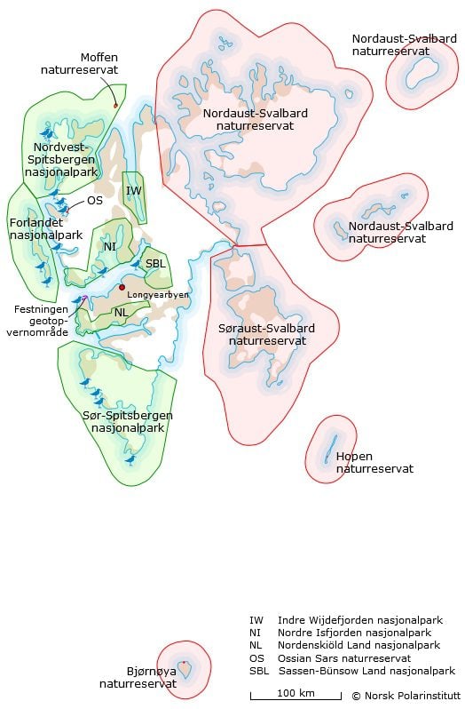 I tillegg til Spitsbergen, hører Nordaustlandet, Barentsøya, Edgeøya, Kong Karls Land, Hopen, Prins Karls Forland, Bjørnøya og alle andre øyer, holmer og skjær mellom 74° og 81° nordlig bredde og 10° og 35° østlig lengde til øygruppa Svalbard. Størsteparten av disse områdene er uberørt natur, og er beskyttet som naturreservater.