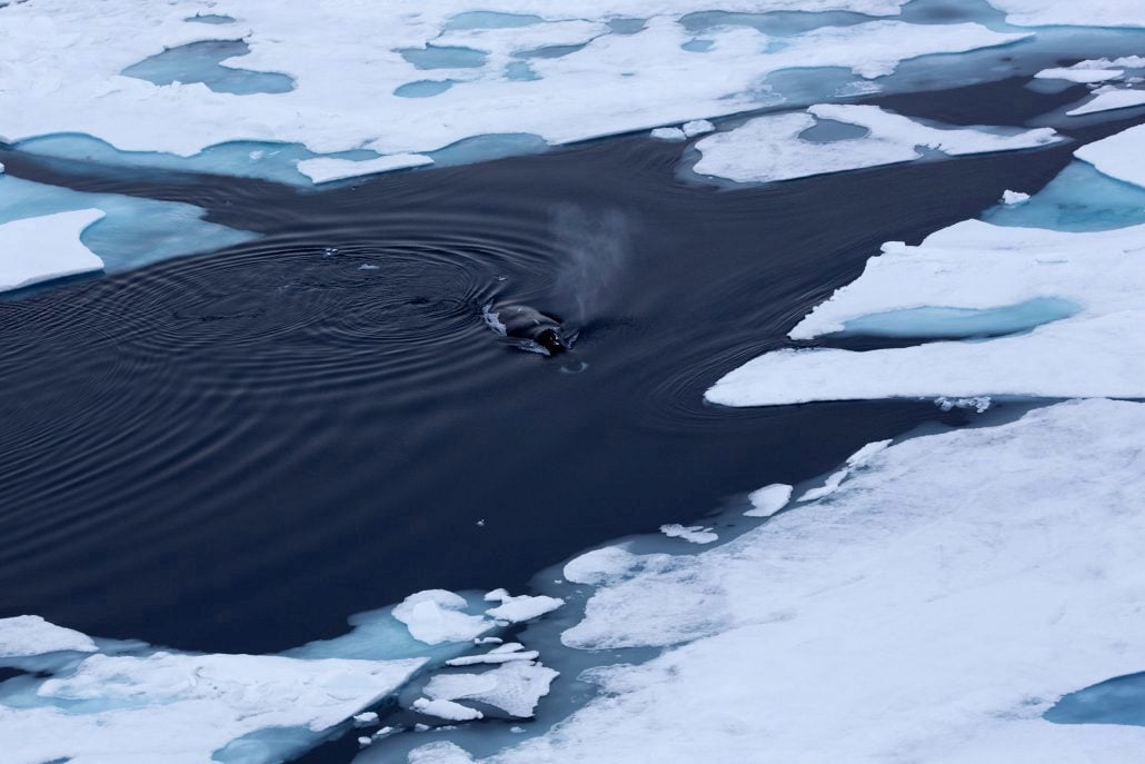 Grønlandshvalen vokaliserer mye med lavfrekvent lyd som rekker over enormt lange avstander.
